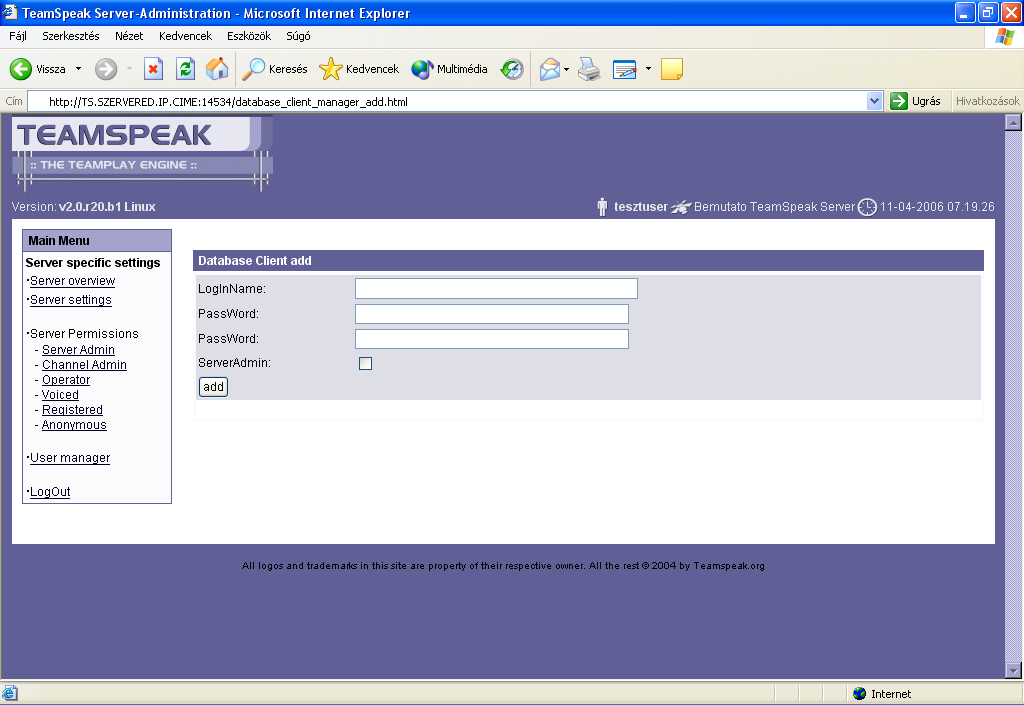 TeamSpeak WebAdmin